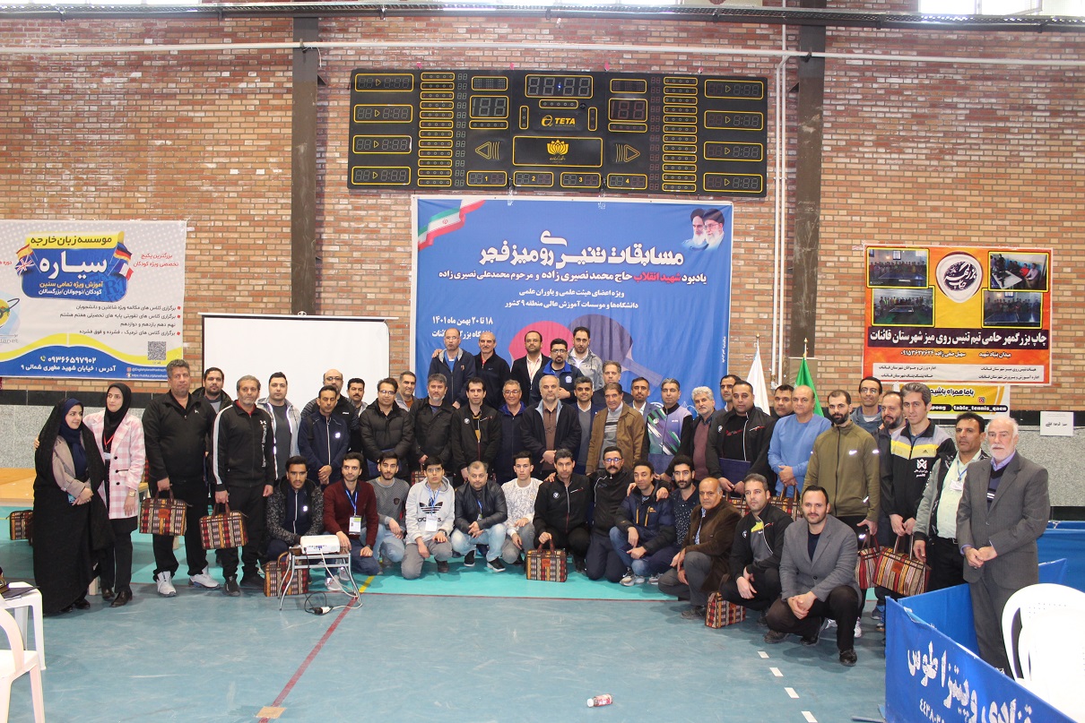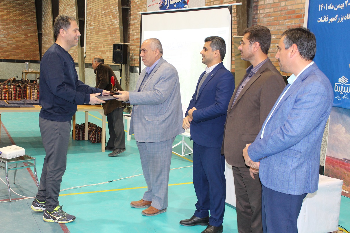 ظهر پنجشنبه۱۴۰۱/۱۱/۲۰، اختتامیه مسابقات تنیس روی میز اعضای هیئت علمی و یاوران علمی دانشگاه ها و موسسات آموزش عالی منطقه ۹ کشور یادبود شهید انقلاب حاج محمد نصیری زاده، با حضور دکتر سید احسان شکیب، رئیس دانشگاه ، دکتر خادملو، دبیر تربیت بدنی منطقه 9 کشور، دکتر محمدی فرماندار شهرستان قائنات، روسای دستگاه های اجرایی شهرستان، اعضای شوار اسلامی شهر قاین و رئیس شورای شهرستان در محل سالن ورزشی مجموعه ورزشی دانشگاه بزرگمهر قائنات برگزار گردید.
